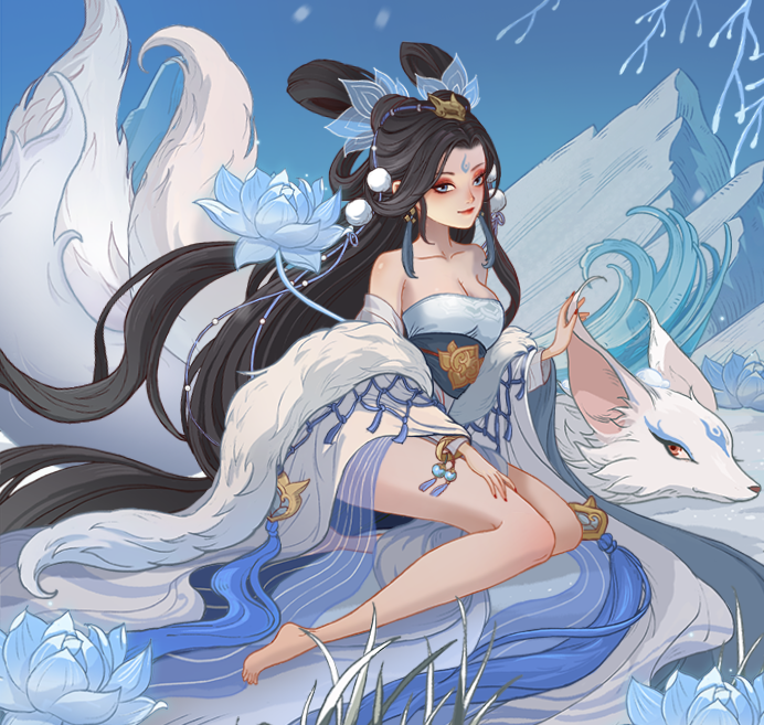 添付ファイル:知己/妲己/雪晴れと寄り添う狐/イラスト